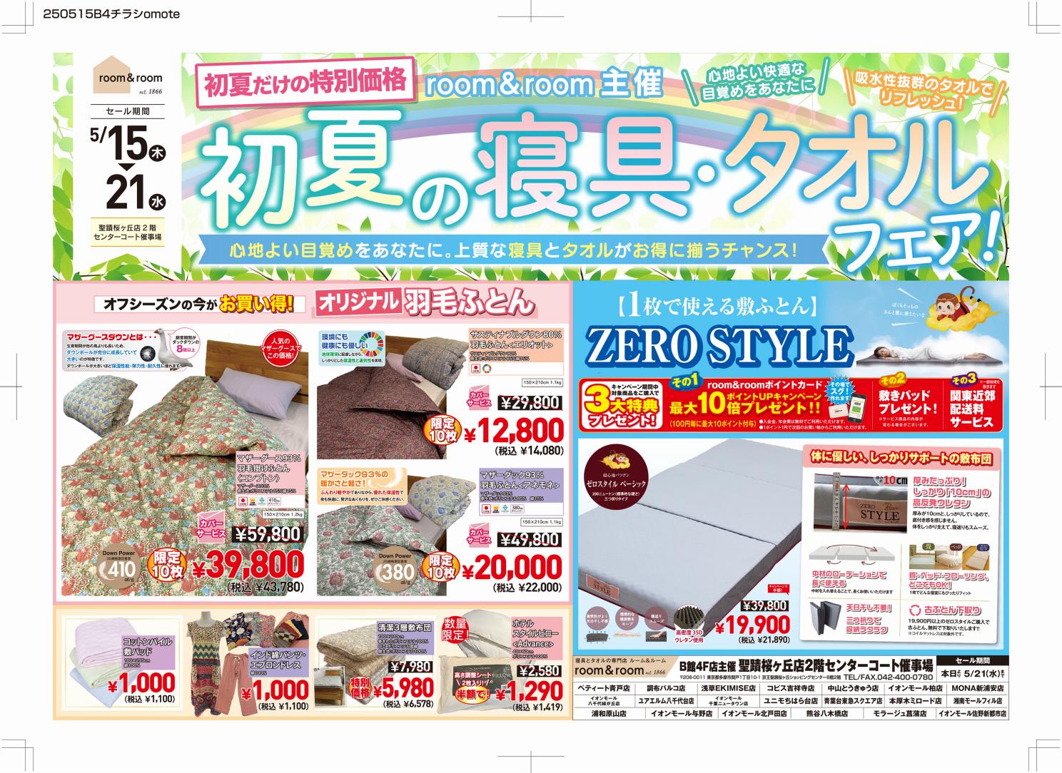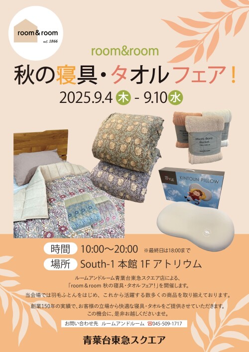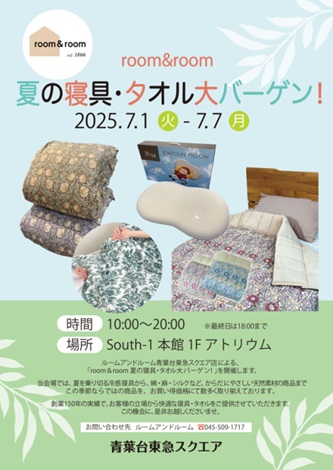 ルームアンドルーム青葉台東急スクエア店による、「夏の寝具・タオル大バーゲン!」を開催いたします。